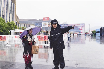 本报讯 随着动漫节开幕,杭州警方全力做好安保工作。昨天虽然下雨,但民警们依然热情饱满地坚守各自岗位,丝毫不敢懈怠。