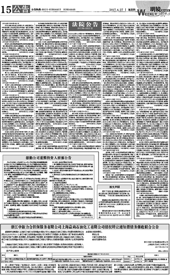 舟山市定海区人民法院于2014年6月先后裁定受理德勤集团股份有限公司、舟山市德勤物流有限公司、舟山市德勤运输发展有限公司、舟山昱晖物流有限公司、舟山市德勤智慧物流科技有限公司等五家公司的重整申请,指定国浩律师(杭州)事务所、中汇会计师事务所担任管理人。2015年2月5日,舟山市定海人民法院裁定上述五家公司与宁波德新海运有限公司(以下合称“德勤公司”)合并重整。德勤公司、管理人现根据重整程序向社会公开招募重整投资者。