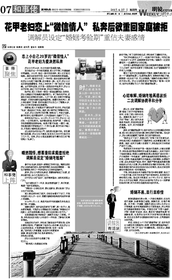 花甲老妇恋上“微信情人” 私奔后欲重回家庭被拒