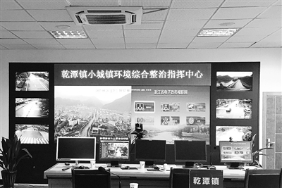 走进乾潭镇政府7楼的小城镇环境综合整治指挥中心,监控屏幕正显示着各条道路的实时情况。工作人员告诉记者,去年年底,乾潭镇借助G20杭州峰会信息智能化平台,成立小城镇环境综合整治指挥中心,工作人员由公安、城管、环卫、综治等多部门组成,现场汇总分类、当场交办、联动解决环境卫生、城镇秩序、乡容镇貌等问题。通过将全镇116个网格、22个综合执法联动站、500多个视频监控资源整合,24小时收集基础信息,数据库汇总分析,形成了环境综合整治的“天网天眼”。