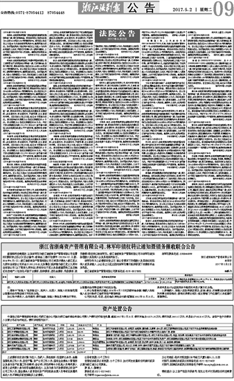受理征询或异议有效期:15个工作日,如对本次处置有任何疑问或异议请与浙江省分公司联系。