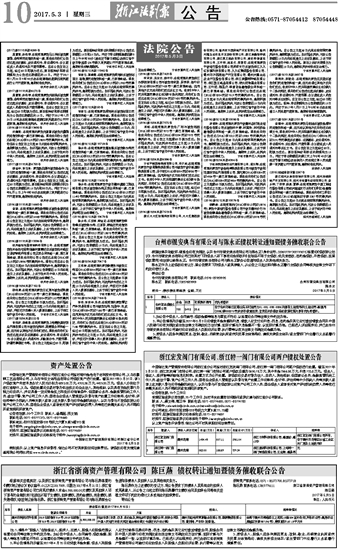 浙江宏发阀门有限公司、浙江特一阀门有限公司两户债权处置公告