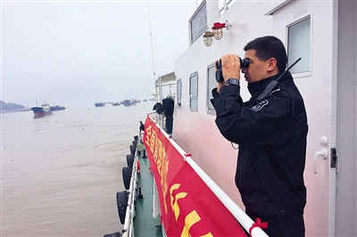 | 王调查看海面有无作业渔船 |