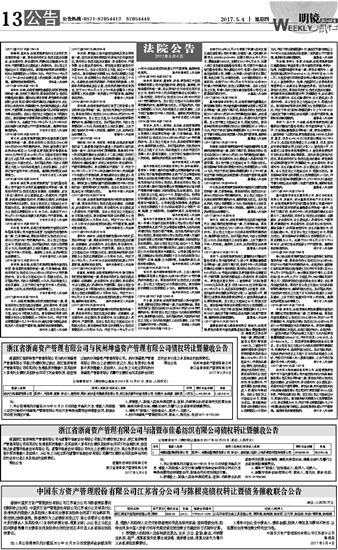 中国东方资产管理股份有限公司江苏省分公司与陈根亮债权转让暨债务催收联合公告