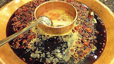 提炼的过程并不复杂,先将客人使用过火锅底料倒在后厨一个小的不锈钢桶上面的过滤网上,过滤了残渣后的油和水经过加热,使油水分离,再把经过分离的油单独盛出来,所谓的“老油”便“提炼”出来了。没多久,张某某就已经熟练掌握这项“技能”。