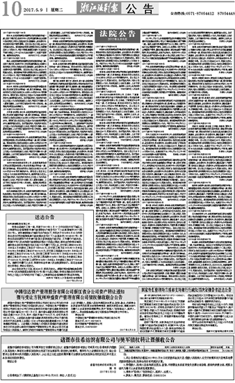 中国信达资产管理股份有限公司浙江省分公司资产转让通知 暨与受让方杭州坤盛资产管理有限公司债权催收联合公告
