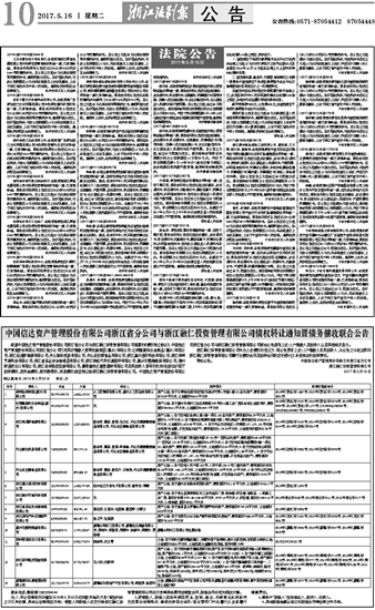 中国信达资产管理股份有限公司浙江省分公司与浙江融仁投资管理有限公司债权转让通知暨债务催收联合公告
