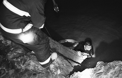 嫌疑人逃跑遇险 消防员绝壁救人