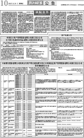 兴业银行股份有限公司杭州分行资产转让通知暨与受让方中国信达资产管理股份有限公司浙江省分公司债务催收联合公告