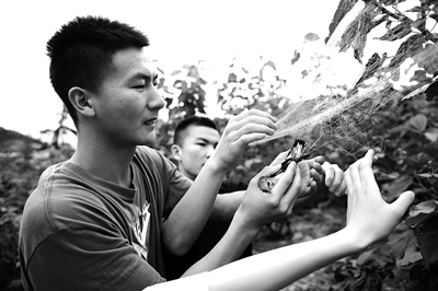 近日,宁波北仑区公安分局巡特警大队实习学员警林广毅、李自夺等,在户外训练时发现一只鸟被尼龙网缠住,把鸟救下后,学员警们将附近缠绕在树上的尼龙丝捕鸟网一一清除。