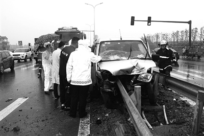 据了解,该车辆由于行驶车速过快,加上雨天路滑,驾驶员来不及刹车,这才撞上了护栏。