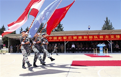 5月22日,在黎巴嫩南部辛尼亚村的中国营,中国第16批赴黎维和部队与第15批维和部队举行轮换交接仪式。