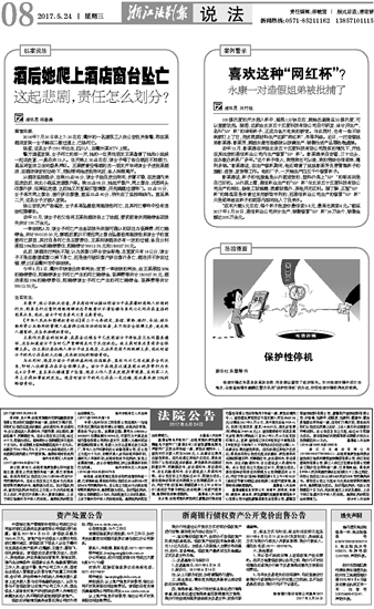 酒后她爬上酒店窗台坠亡