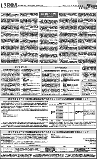 浙江省浙商资产管理有限公司台州市资产管理有限公司债权转让通知暨债务催收联合公告