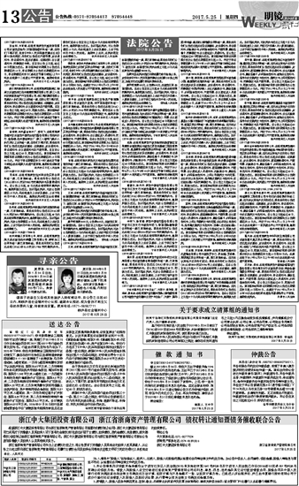 浙江中大集团投资有限公司 浙江省浙商资产管理有限公司 债权转让通知暨债务催收联合公告
