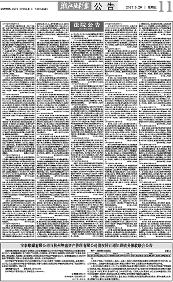 宝泰顺耀有限公司与杭州坤盛资产管理有限公司债权转让通知暨债务催收联合公告