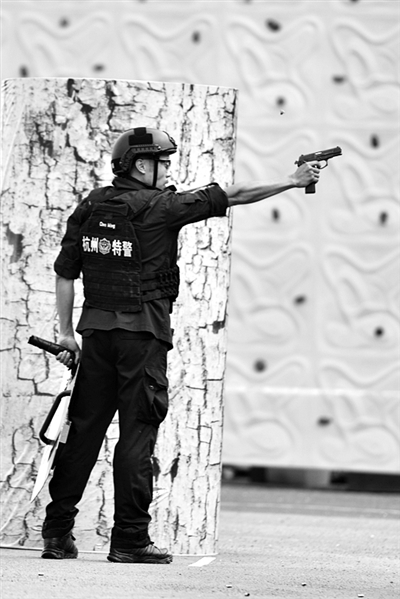 昨天,记者走进了这个“神秘”的学校一探究竟。原来,5月23日至26日,浙江省特警大比武在这里举行,比武的项目有综合体技能、建筑物攀登、长短枪互换应用射击、狙击步枪实战应用射击和防盗门破拆等五大科目。