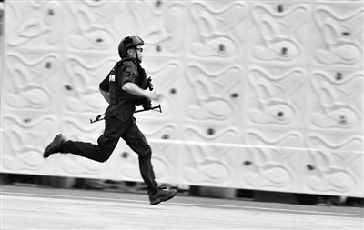 队员首先要完成短枪50米精度射击,之后进行50米折返跑、50米掩体立姿射击,运用低姿、匍匐等战术动作挺进40米掩体跪姿射击。