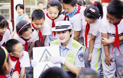 “六一”儿童节前夕,河北省衡水市公安局交警支队直属一大队爱心志愿者来到衡水市实验小学,举办以“迎六一 送安全”为主题的交通安全宣传活动。