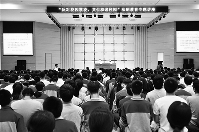 近日,江山市检察院开展检察开放日活动,与团市委、市教育局、城北派出所、双塔街道周家青社区等单位联手,在江山中学举办了以“反对校园欺凌 共创和谐校园”为主题的校园法制讲座,引导学生学会用理性思维、法治方式分析、解决矛盾,拒绝校园暴力欺凌。