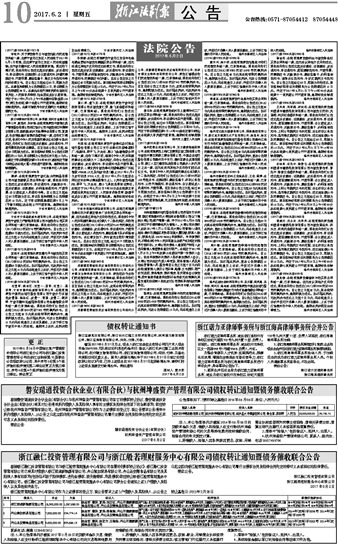 浙江融仁投资管理有限公司与浙江般若理财服务中心有限公司债权转让通知暨债务催收联合公告