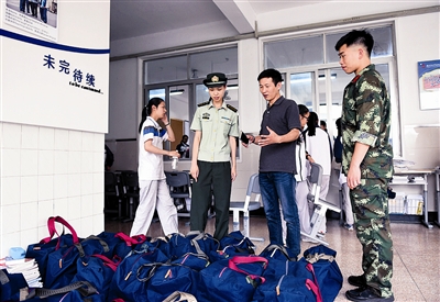 下午,杭州拱墅消防大队的检查人员来到杭州中策职高考点时,师生们正在对所有考场进行清场,不时有学生从教室走出后相互挥手告别,教学楼的过道上堆满了清理出的桌椅和包裹。