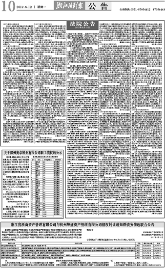 浙江省浙商资产管理有限公司与杭州坤盛资产管理有限公司债权转让通知暨债务催收联合公告