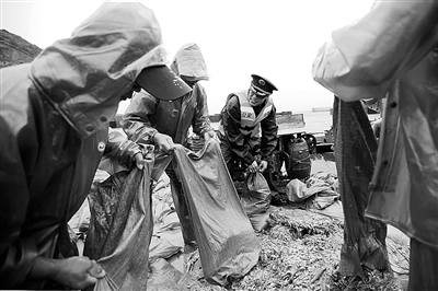 连日来,受冷暖空气共同影响,温州迎来入汛后首轮强降雨。6月12日,温州公安边防总队温州边防支队南麂边防派出所迅速启动防洪涝防暴雨应急预案,全力服务登岛游客,引导船舶进港避风,帮助养殖户加固渔排、转移物资。图为边防民警帮助养殖户抢收海货。
