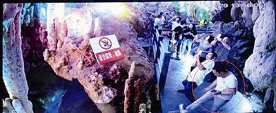 | 今年5月,游客张某三脚踢断石钟乳。 |