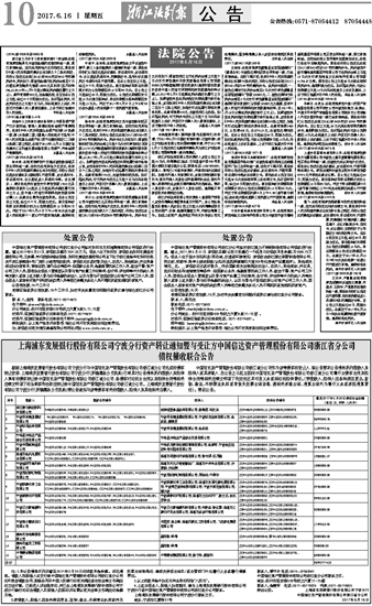 上海浦东发展银行股份有限公司宁波分行资产转让通知暨与受让方中国信达资产管理股份有限公司浙江省分公司 债权催收联合公告