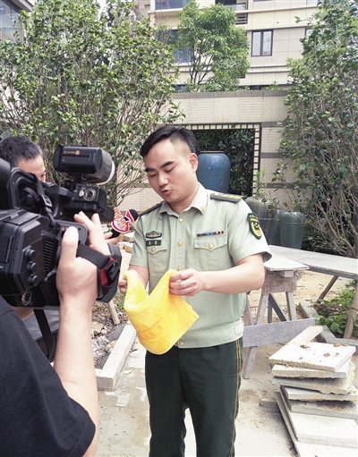 宁波市消防支队防火监督处参谋汪杨在现场教记者和实验人员如何折叠毛巾用于火灾逃生。“毛巾至少要对折三次,让它达到8层或8层以上,才能有效地起到抵御烟气的作用。捂住口鼻前要用水把毛巾充分打湿,这样才能更好地吸附烟尘和有毒有害气体。”汪杨说。