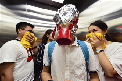 “如果是真实的火场,浓烟还有热浪都会威胁人的生命。”江北消防中队指导员刘慧明说,“火场里,热烟气会以每秒3—5米的速度向上蔓延,准备逃生时,逃生人员可以先用手触摸门把手,判断楼道内是否已经被浓烟、热浪包围,如果楼道内已经被浓烟包围,应立即用湿毛巾、湿床单等物品堵住门缝,从火场反方向的窗口向外发送呼救信号,切忌盲目跳楼逃生。”