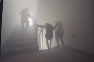 “才下到第5层,烟雾就熏得我眼睛都睁不开了,只能摸着楼梯扶手一步步向下走,当时真的很怕会出意外,但最后还是坚持下来了。”虽然用湿毛巾捂着口鼻的消防员最终跑到了1楼,但他的用时已经超过了8分钟,可见过程之艰难。