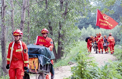 “别看演习设置的徒步路程才9公里,但中间把各种意外环节都设计进去了。”消防员告诉记者,徒步路线完全模拟了地震灾区的现场环境,消防官兵不但要推着载重达千斤的设备和物品在狭小崎岖的山路间行进,而且时不时还要面对沟壑和断头路。