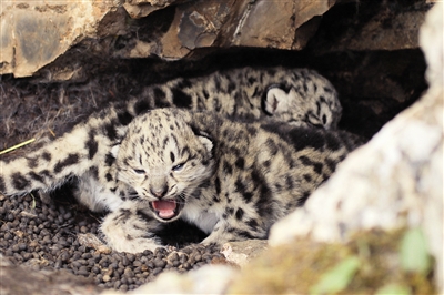 在青海省玉树州称多县尕朵乡拍摄到的雪豹幼崽。