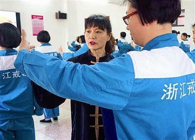 | 省戒毒公益大使、德清县木兰拳协会会长潘月明来到浙江省莫干山女子强制隔离戒毒所,开展“中国传统健身项目公益课”教学。 |