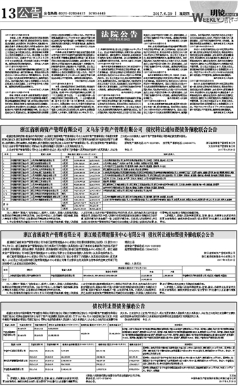 浙江省浙商资产管理有限公司 义乌东宇资产管理有限公司 债权转让通知暨债务催收联合公告