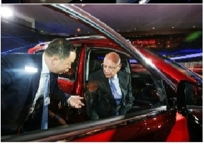 | 郁俊总经理向施瓦布教授介绍传祺GS7和传祺GE3 |
