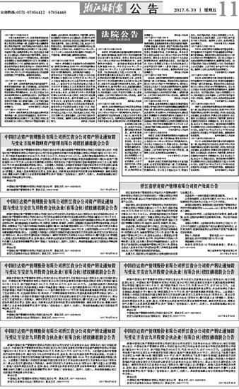 - 中国信达资产管理股份有限公司浙江省分公司资产转让通知 暨与受让方安吉九贝投资合伙企业(有限合伙)债权催收联合公告