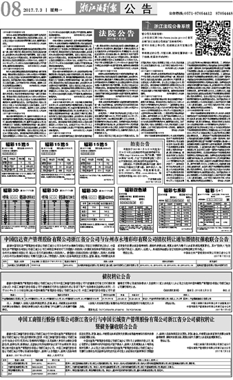 中国工商银行股份有限公司浙江省分行与中国长城资产管理股份有限公司浙江省分公司债权转让 暨债务催收联合公告