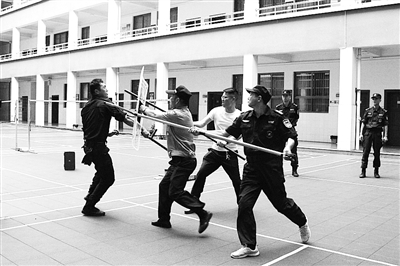 培训中,特警队员详细讲解了安保人员的职责、校园安全事件发生后的应急处理和基本安防器械的使用等方面知识,随后特警大队安排现场演练,向参训人员演示了盾牌、警棍、防爆钢叉和橡胶棍的使用。此次培训进一步提高学校和师生的反恐防暴意识,增强了各校园内保安人员的处置能力。