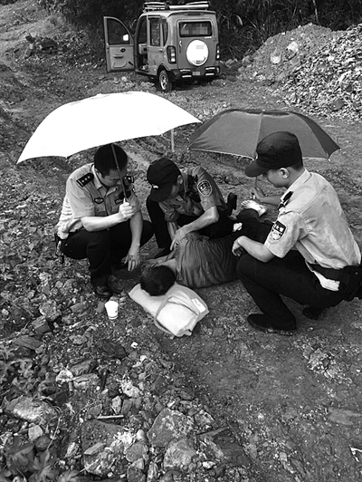 随后,救护车赶到。但由于水库位于山中,又下着雨,警车也只能停在百米开外,救护车更是开不上来。这一段又窄又泥泞的路,陈革一行只能徒手抬着担架,将大爷送上救护车。