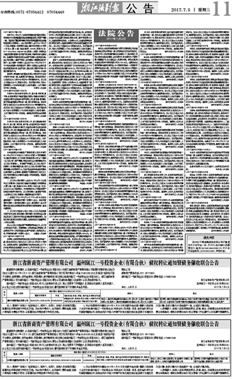 浙江省浙商资产管理有限公司 温州瓯江一号投资企业(有限合伙) 债权转让通知暨债务催收联合公告
