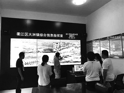 在衢江区大洲镇综合信息指挥室里,一个大屏幕上显示着全镇实时动态。在值班员的操作下,屏幕上甚至可以清晰地看到路面上的一辆自行车或者村民家门口的一只猫。镇长吕信七介绍,大洲镇已经实现“天眼”全覆盖。