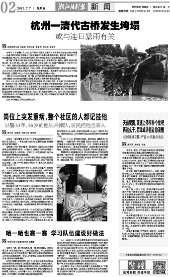 杭州一清代古桥发生垮塌