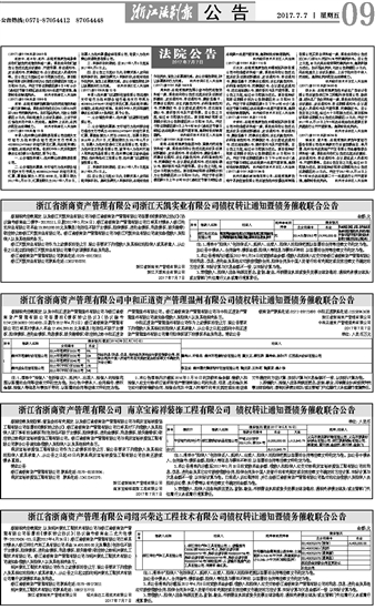浙江省浙商资产管理有限公司 南京宝裕祥装饰工程有限公司 债权转让通知暨债务催收联合公告
