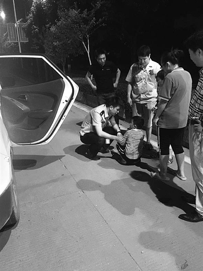 民警赶到现场后发现,小男孩七八岁的样子,看起来十分害怕,于是蹲下来与他交流。或许是因为紧张,男孩一时无法讲出父母的姓名和联系方式,民警便将他带回了派出所。当晚八点半,小男孩父母得知走失的孩子已被民警找到,便立即赶至派出所将孩子接回。