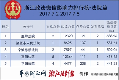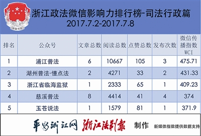 浙江政法微信排行榜第106期