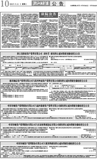 浙江省浙商资产管理有限公司 胡叶芳 债权转让通知暨债务催收联合公告
