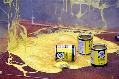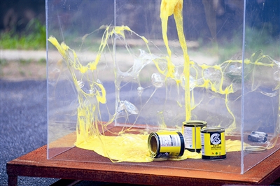 15分18秒,第二罐万能胶盖子被炸飞,冒着泡的万能胶从罐体内溢出。